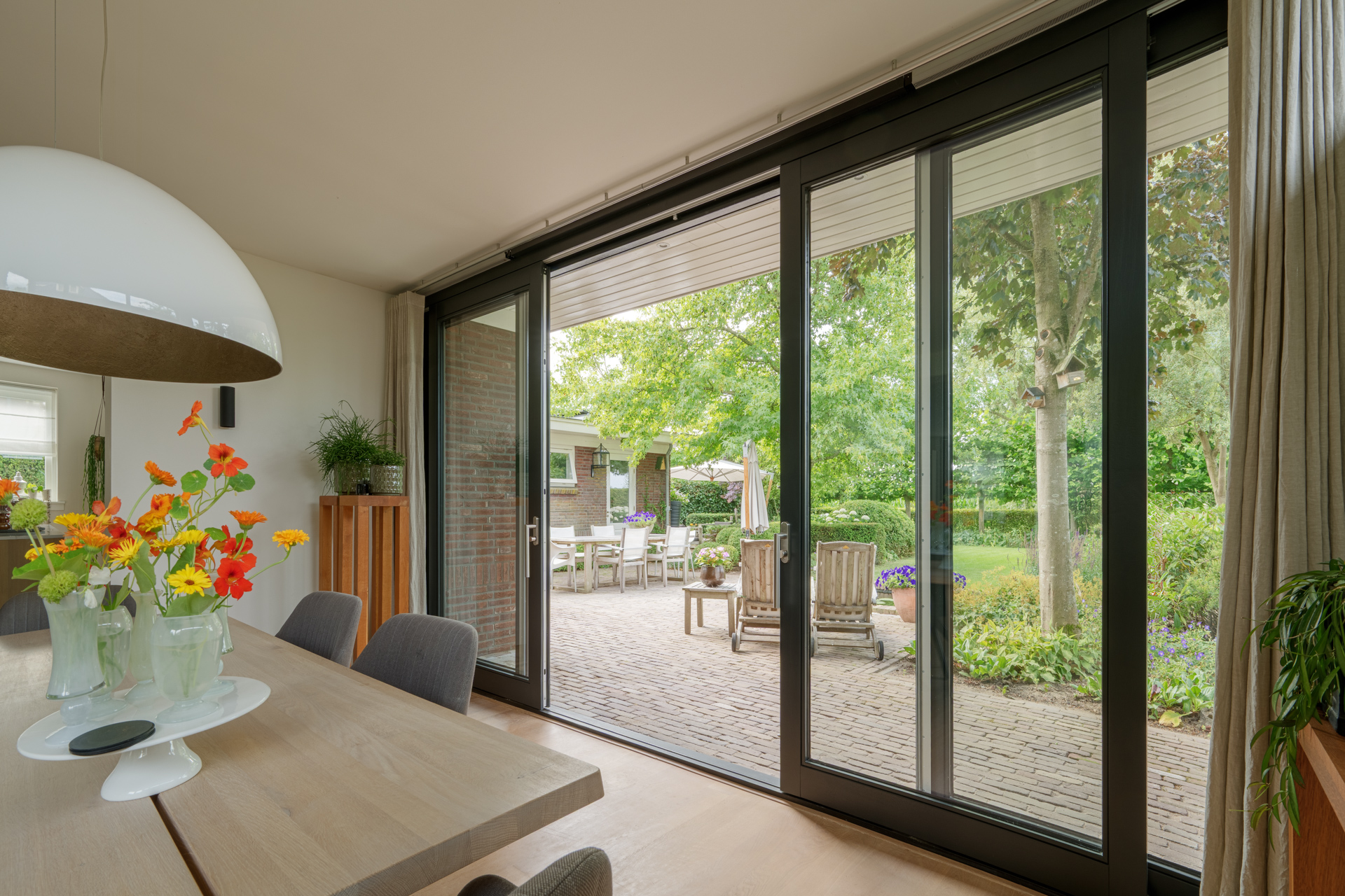 Met deze uitbouw voelt de woning weer als nieuw. De uitbreiding sluit naadloos aan op het bestaande huis en creëert precies die extra ruimte waar je naar verlangt. De moderne pui met royale schuifdeuren verbindt binnen en buiten op een natuurlijke manier en laat het daglicht overvloedig naar binnen stromen. Binnen is alles vernieuwd: een stijlvolle keuken, prachtige vloeren en een frisse uitstraling die helemaal bij de woning past. Een plek waar je meteen thuis voelt – met het comfort en de ruimte van nu.